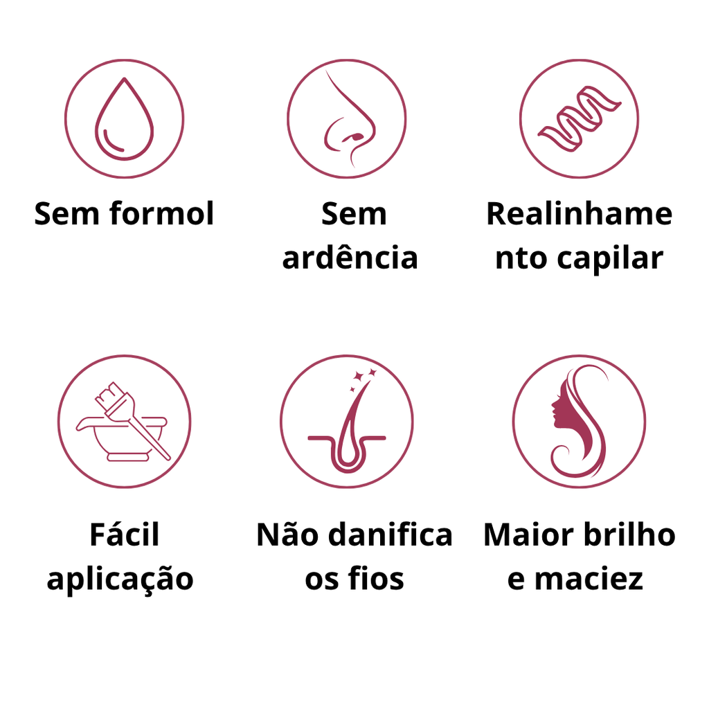 - Glyoxyloyl Carbocysteine and Keratin Amino Acids: Repair the hair structure, providing strength and softness.